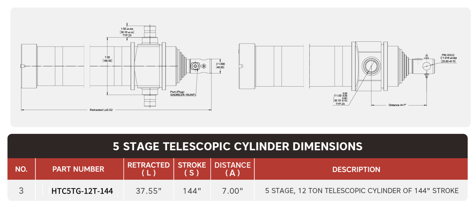 „HTC5TG-12T-144“, 5 pakopų, 12 tonų 144 colių eigos teleskopinis cilindras